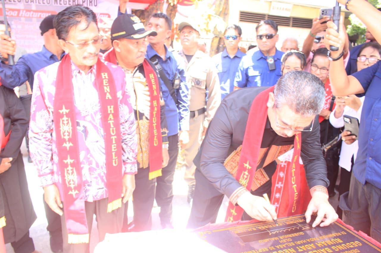 Lenteranusantara.Co.Id, Piru – Gubernur Maluku, Hendrik Lewerissa menghadiri sekaligus meresmikan Gedung ‘Baileo Hena Hatutelu’ di Desa Piru, Kecamatan Seram Barat, Kabupaten Seram Bagian Barat, Maluku, Selasa (30/9/2025).